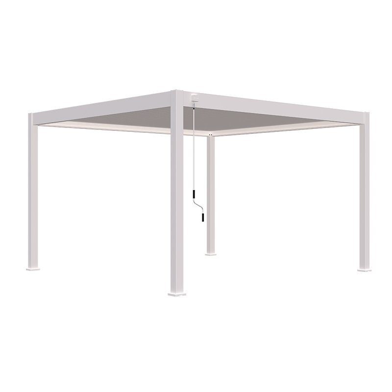 De Horizon overkapping 400 x 400 is volledig gemaakt van aluminium. Het frame is gemaakt van stevig aluminium dat is behandeld met een poedercoating om roest en corrosie te voorkomen. Daarnaast beschikt deze overkapping over extra dikke poten van 116 x 116 mm. Dit zorgt voor een robuuste uitstraling. Alle schroeven zijn volledig RVS. Door de keuze voor deze hoogwaardige materialen is deze pergola zonder problemen het gehele jaar door te gebruiken. En dat voor jaren lang!