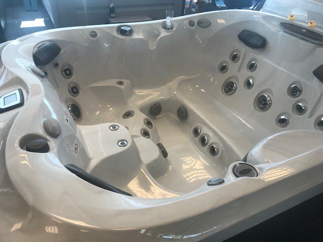 Jacuzzi® 425 afmetingen 221 x 193 x 99 cm. Direct leverbaar. Kleur Platinum / Smoked Ebony