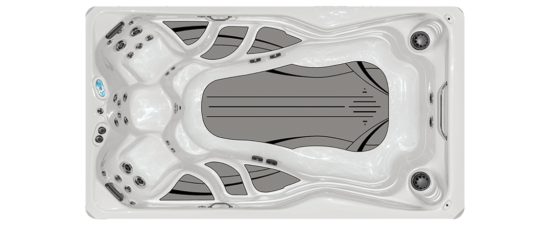 Standaard uitgevoerd met Full Foam isolatie, Ozonator, RVS jets, Ecopure Charge filtersysteem, voorzien van klapcovers en de H2Xercise fitness system roei en krachttraining kit.