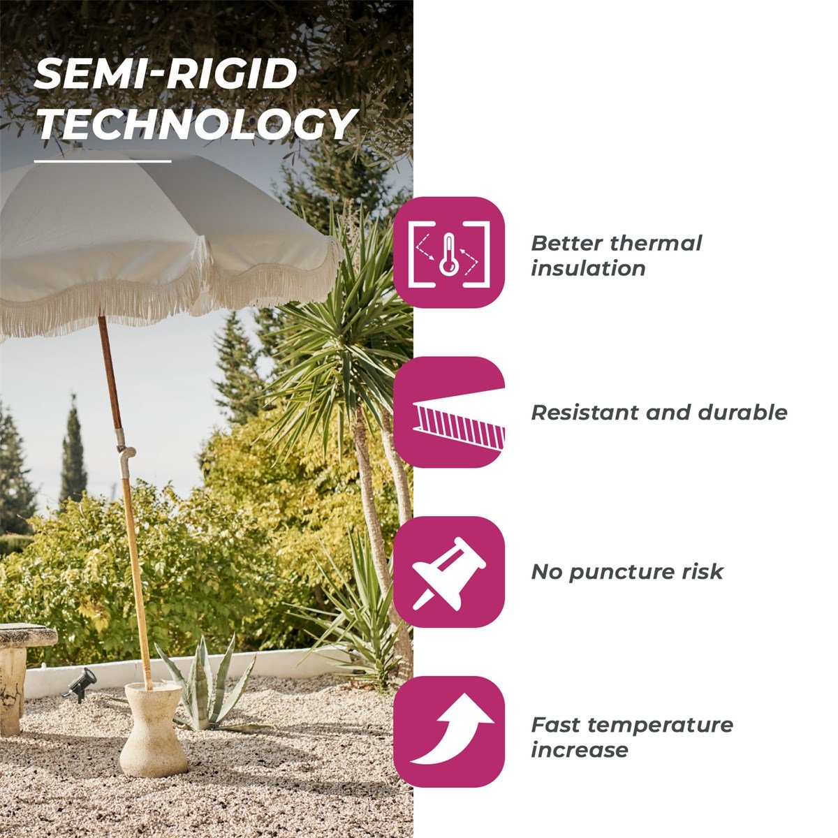 ongeacht de tijd van het jaar. Een warme, veilige ruimte waar u kunt ontspannen en tot rust kunt komen. Kies voor de Vita. De semi-stijve structuur