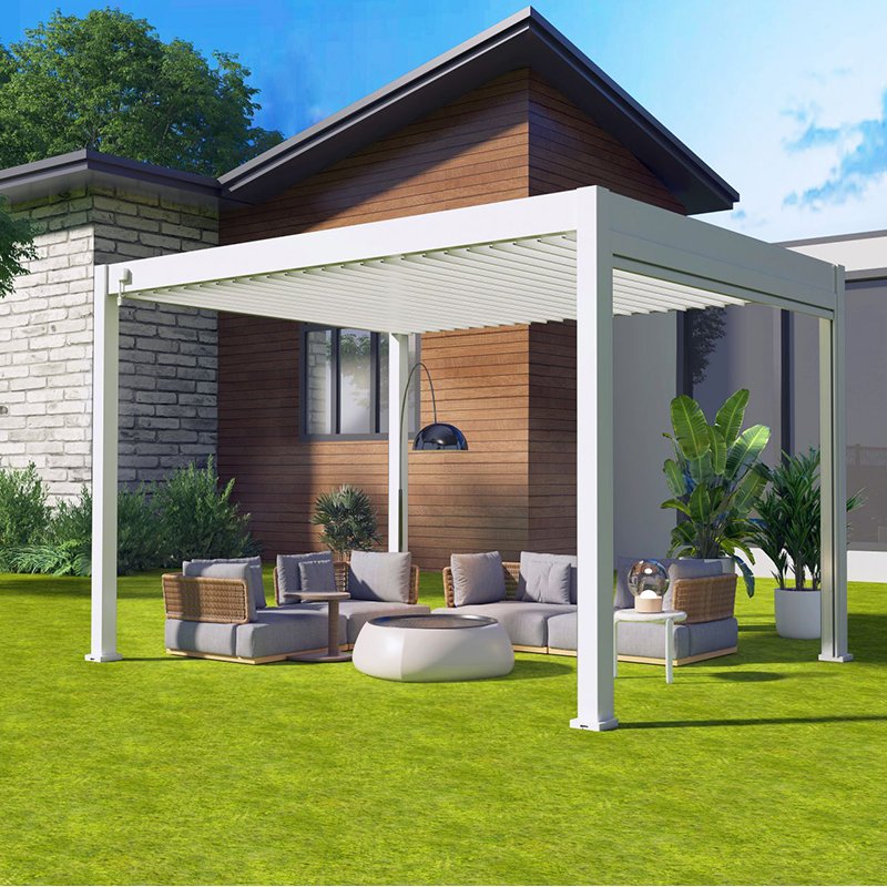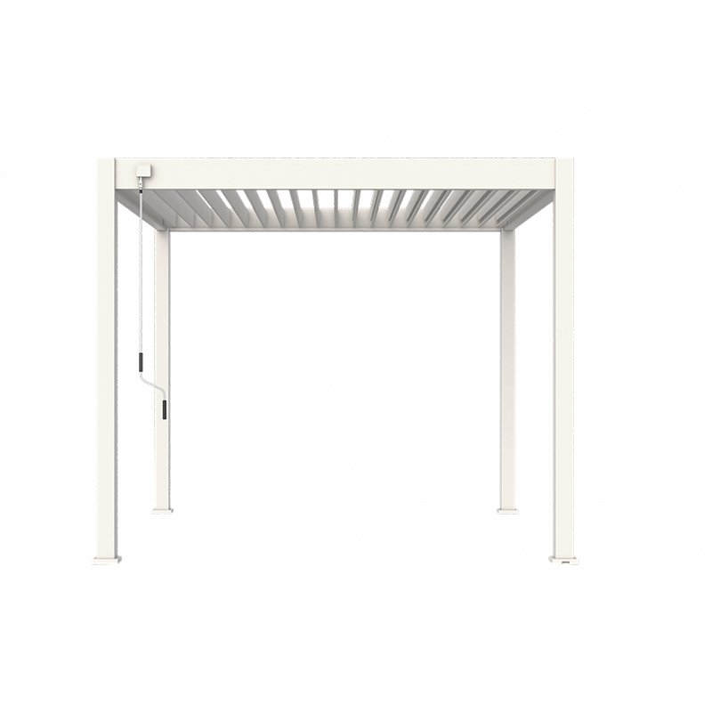 De ORION overkapping 300 x 300 is volledig gemaakt van aluminium. Het frame is gemaakt van stevig aluminium dat is behandeld met een poedercoating om roest en corrosie te voorkomen. Daarnaast beschikt deze overkapping over extra dikke poten van 116 x 116 mm. Dit zorgt voor een robuuste uitstraling. Alle schroeven zijn volledig RVS. Door de keuze voor deze hoogwaardige materialen is deze pergola zonder problemen het gehele jaar door te gebruiken. En dat voor jaren lang!
