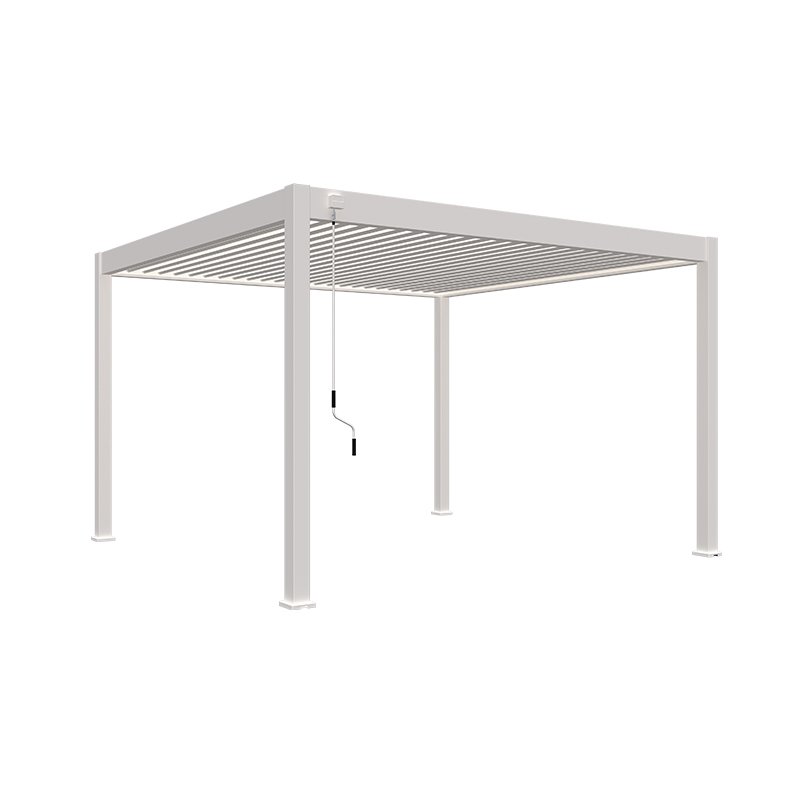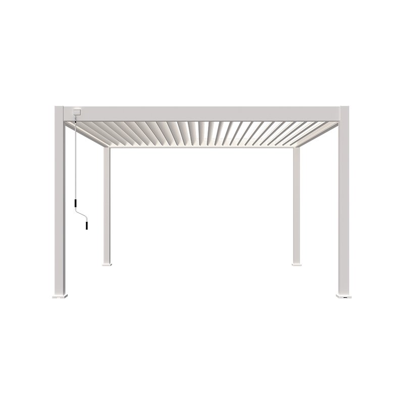 De Orion overkapping 360 x 400 is volledig gemaakt van aluminium. Het frame is gemaakt van stevig aluminium dat is behandeld met een poedercoating om roest en corrosie te voorkomen. Daarnaast beschikt deze overkapping over extra dikke poten van 116 x 116 mm. Dit zorgt voor een robuuste uitstraling. Alle schroeven zijn volledig RVS. Door de keuze voor deze hoogwaardige materialen is deze pergola zonder problemen het gehele jaar door te gebruiken. En dat voor jaren lang!