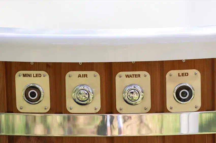 LED-verlichting, water- of airjets bedient u eenvoudig met luxe knoppen aan de buitenzijde van de hottub. Let op: Bij de Ultimate worden deze knoppen vervangen voor het Gecko bedieningspaneel