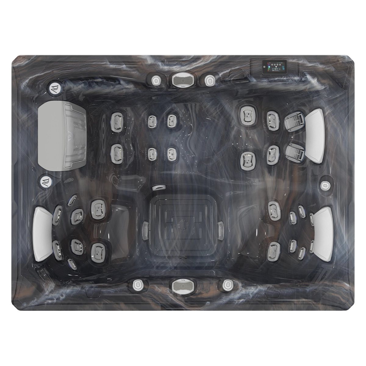 De jacuzzi heeft 1 ligpositie, en 2 zitposities. De massage is onovertroffen. Schitterende afwerking.